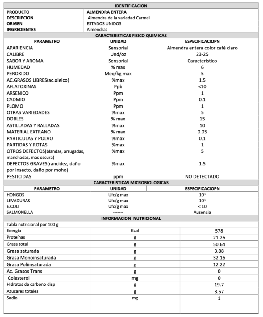 La almendra Carmel es una variedad de almendra conocida por su cáscara ligera, ideal para ser procesada y utilizada en productos como almendras repeladas o tostadas. También es popular por su facilidad de procesamiento, lo que la convierte en un ingrediente común en la fabricación de alimentos.
